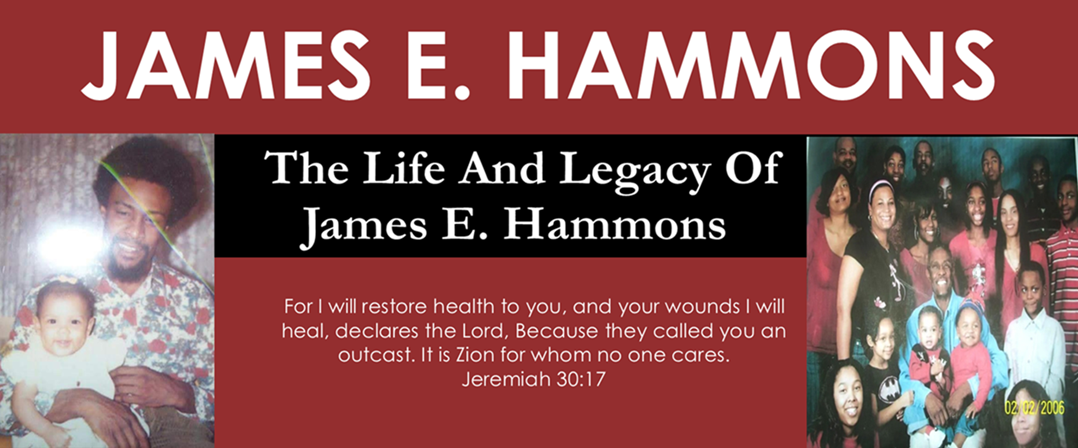The Life and Legacy of James E. Hammons is about my father, a dedicated, hard working, determined man that set out his life to become the person he wanted to be and was in his life until the end. Born in Elyria, Ohio, James set the stage of his life at an early age for his love and passion for singing, his voice was one of many that stood out to the crowd, with his rare high pitch notes that he sang. He continued singing until his departure from this life. In James residence in the city of Inkster, Mi. they say that he looked like and sang like the late Marvin Gaye. James at a young age, in Inkster, Mi. met the love of his life and married Toni Taylor (Hammons). James joined and served in the army, stationed in California and later started his career job at Ford's Motor Company Rawsonville Plant in Ypsilanti, MI. James and Toni began their family that was the result of 7 children. James figured in his life that their was something missing, on August 16th 1977 he went to his brother's Breen Hammons house and accepted the Lord in his life and from that day forward he became a changed man. Once he accepted the Lord in his life, his life changed for many opportunities, joy and happiness in his life. The beginning of his new life started and this is the story that I will share for the Life and Legacy of James E. Hammons One of the quotes of James Hammons in his sophomore yearbook at Inkster High School in Inkster, MI. in 1956 was